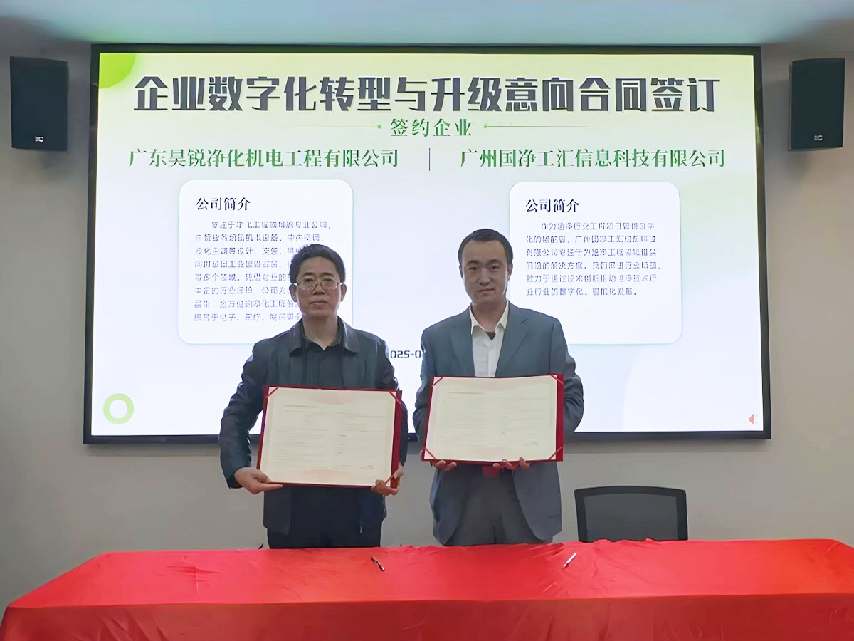 研討會期間,張勁松總經(jīng)理簽訂了潔凈技術(shù)行業(yè)數(shù)字化轉(zhuǎn)型合作意向書,未來昊銳凈化公司將繼續(xù)深化數(shù)字化轉(zhuǎn)型,為客戶提供更智能、更高效的凈化工程整體解決方案。中國潔凈技術(shù)行業(yè)協(xié)會秘書長張仲杰:"廣東昊銳的數(shù)字化轉(zhuǎn)型實踐為行業(yè)提供了寶貴經(jīng)驗,期待更多企業(yè)加入數(shù)字化生態(tài)建設。"